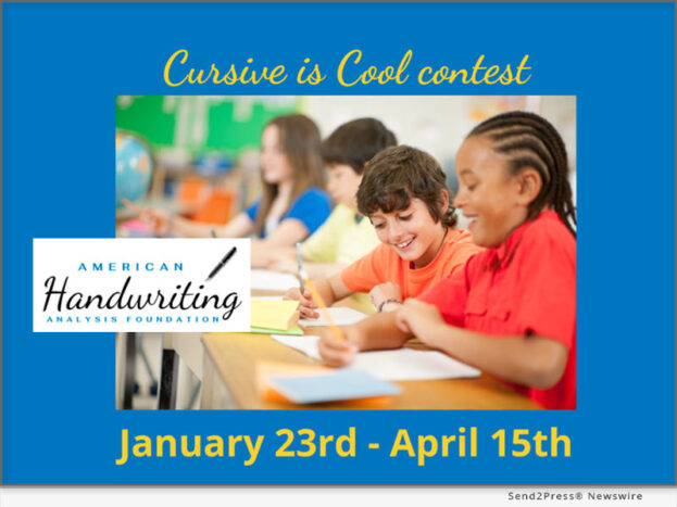 LOS ANGELES, Calif., Jan. 30, 2026 (SEND2PRESS NEWSWIRE) — The American Handwriting Analysis Foundation (AHAF) announced today that its annual Cursive Is Cool® handwriting contest is now open to students in Kindergarten through Grade 7, encouraging young writers to express themselves creatively through cursive handwriting.